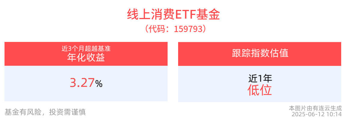 截至2025年6月12日 10:14,中证沪港深线上消费主题指数(931481)上涨0.03%,成分股巨人网络(002558)上涨9.98%,网易云音乐(09899)上涨5.90%,中旭未来(09890)上涨5.45%,光线传媒(300251)上涨3.24%,横店影视(603103)上涨2.96%。线上消费ETF基金(159793)下跌0.65%,最新报价0.92元。拉长时间看,截至2025年6月11日,线上消费ETF基金近1周累计上涨4.49%。